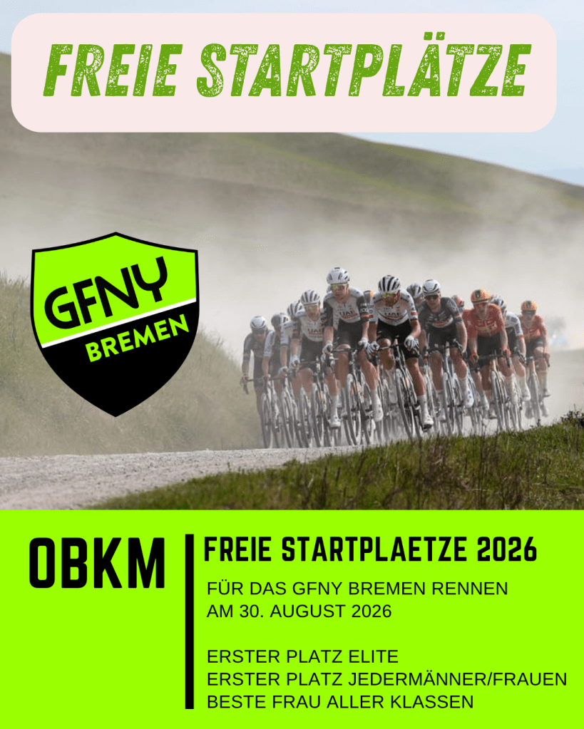 Gute Nachrichten: GFNY hat sich freundlicherweise bereit erklärt, drei freie Startplätze für das GFNY Bremen am 30, August zu vergeben. Wer noch keine Infos zu diesem 100 km Rennen hat, der findet diese hier bei GFNY Bremen.